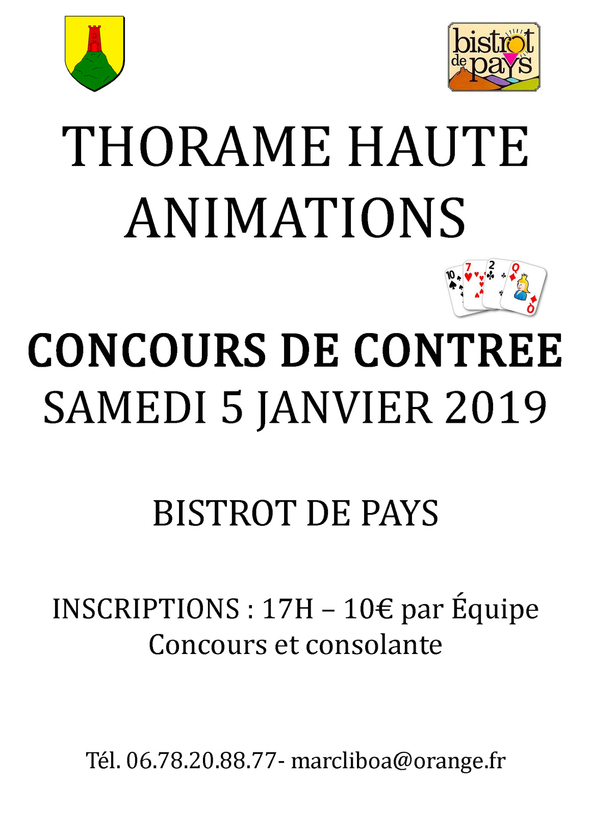 Nouvelles concours de contrée Thorame-Haute concours de contrée dimanche 05 Janvier 2019 inscriptions à 17h au bistrot de pays 10€ par équipe concours et consolante