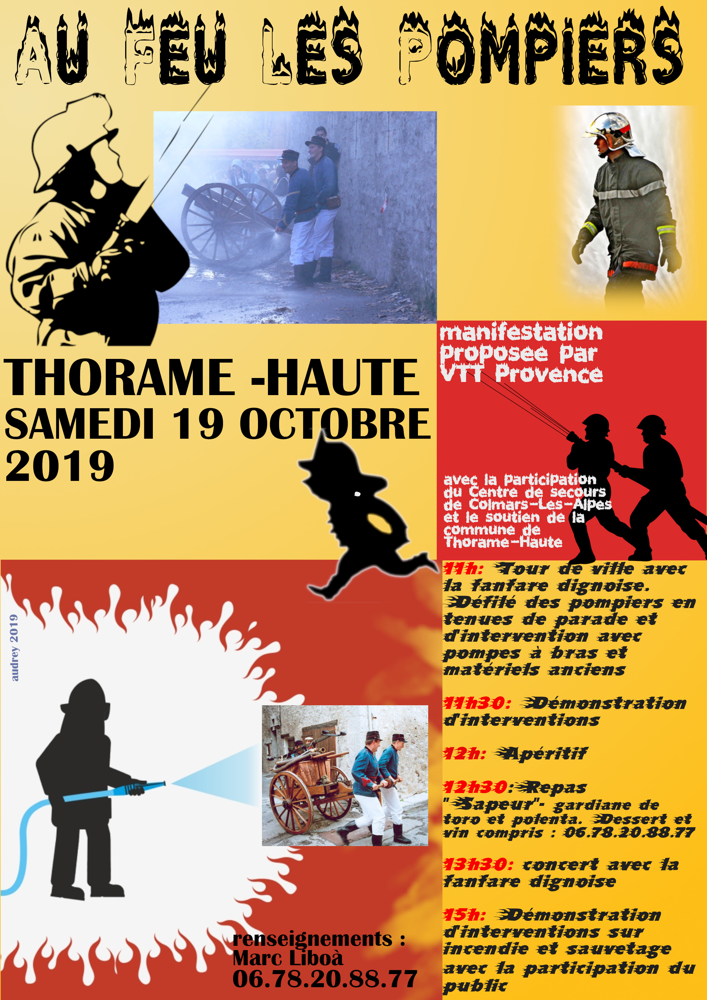Nouvelles manifestation samedi 19 octobre 2019 au feu les pompiers samedi 19 octobre Grande parade, expositions et démonstrations d'époque tour du village avec la Fanfare Dignoise, défilé des pompiers en tenues de parade et intervention avec la pompe à bras et matériels anciens. Apéritif et repas "Sapeur" au Bistrot de Pays. toutes les infos