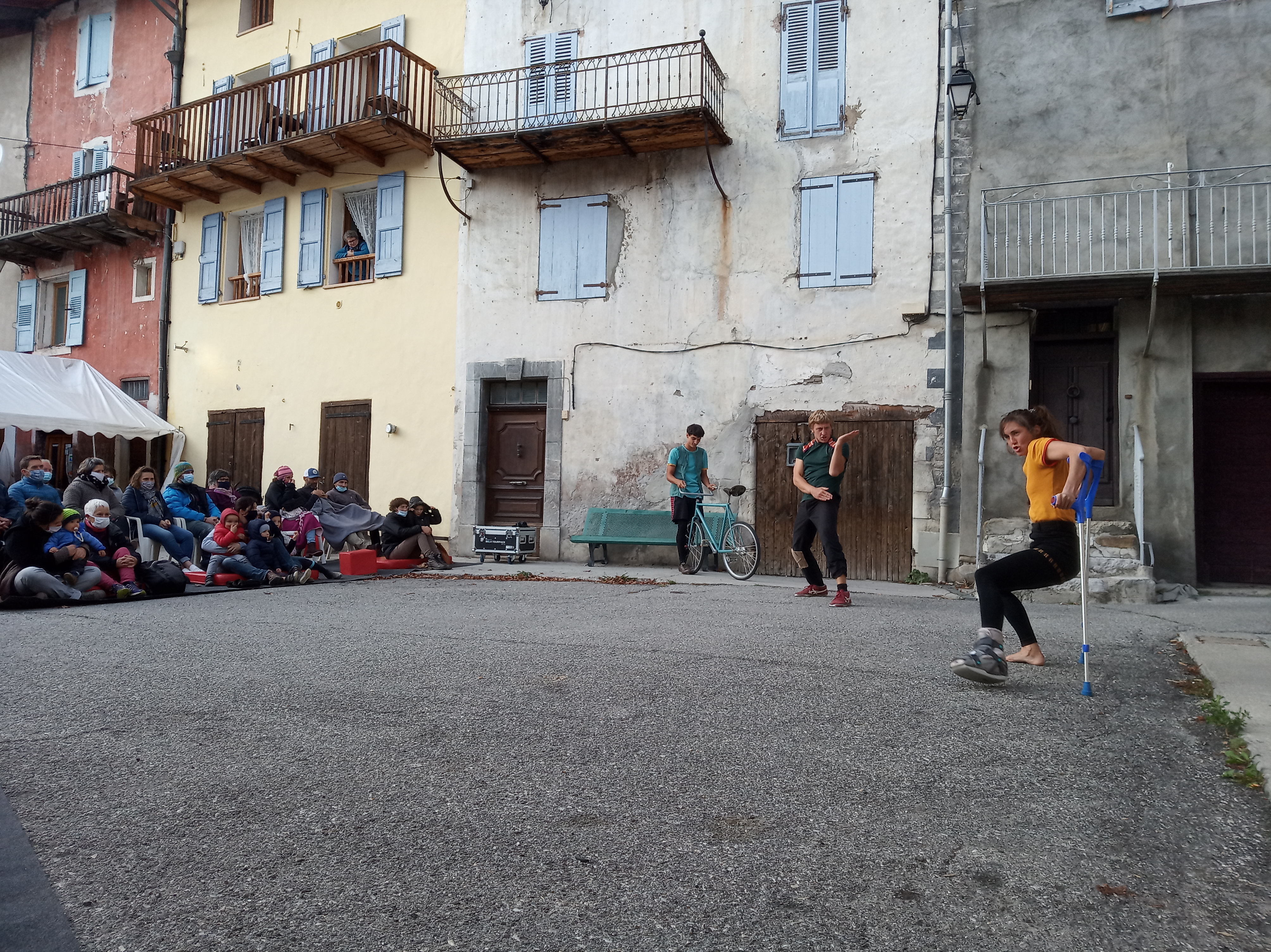 Ce mercredi 7 octobre 2020, la compagnie franco-allemande Zirkus Morsa, a donné une représentation de leur spectacle « Ce n’est que le début » sur la place du village. Invitée par l’association Art et Culture Fabri de Peiresc, les trois artistes ont sillonné les routes du territoire de la communauté de communes Alpes Provence Verdon, Sources de lumière à vélo, passant par Annot, La Mure, St André, Castellane et Thorame-Haute, leur dernière étape. A chaque fois, ils ont posé leurs valises pendant quelques jours, le temps de rencontrer les habitants et d’adapter leur spectacle aux spécificités des lieux et aux inspirations nées sur place. Ce mercredi, une cinquante de personnes étaient présentes pour assister à cette création unique. A Thorame-Haute, la Compagnie est également intervenue auprès des deux classes de l’école, l’occasion d’ateliers de partage et d’initiation au cirque.