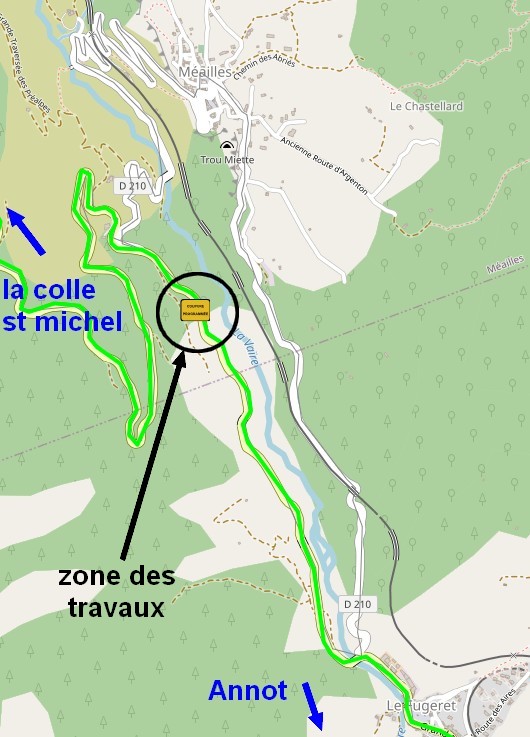 La RD 908 est fermée pour travaux (réfection de parapet) du 21 juin au 7 juillet de 8h à 12h et de 13h à 18h entre l’entrée et la sortie de Méailles. Ce qui signifie que pour se rendre sur Nice ou venir dans la Vallée, il faut soit passer par Méailles (route très étroite), soit passer par Saint André les Alpes ou passer durant les heures d’ouverture.