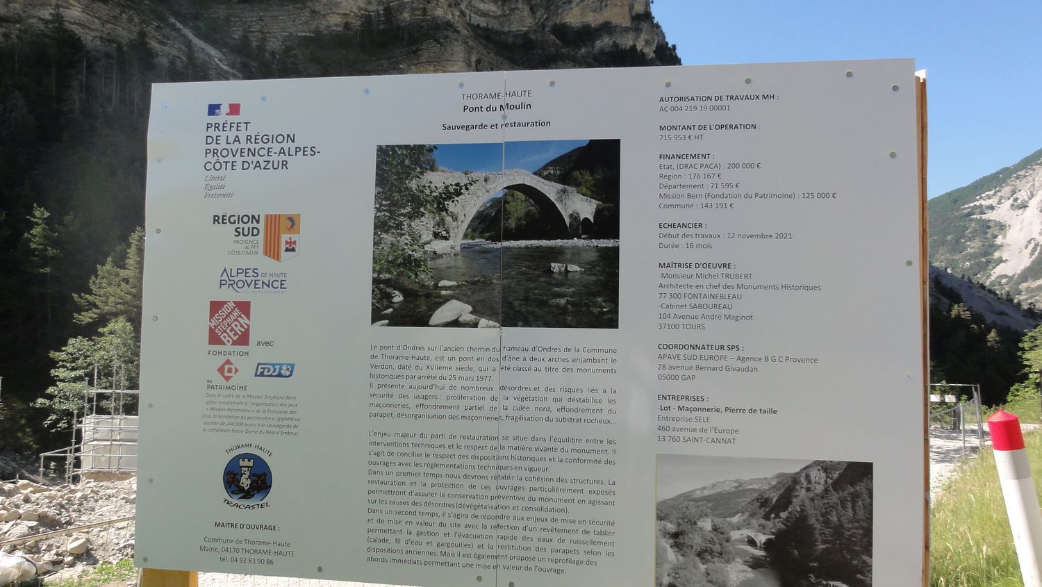 Nouvelles travaux pont du moulin Les travaux de terrassement pour organiser le chantier sont finis. La pose de l’échafaudage suspendu est aussi arrivée à son terme. Les travaux de maçonnerie vont pouvoir commencer. quelques photos des travaux