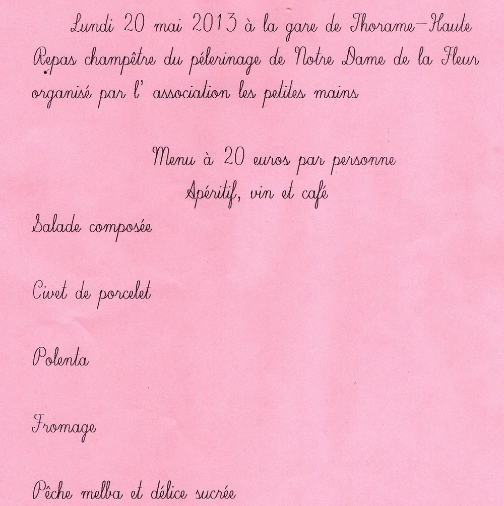 Comme tous les Lundis de Pentecôte, ce 20 mai 2013 aura lieu la procession à Notre Dame de la Fleur. Venez nombreux ... |