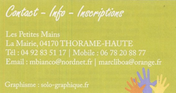 L'association "les petites mains" organise 3 fêtes au mois d'août 2013 venez nombreux ... (contactez l'association pour réserver) |