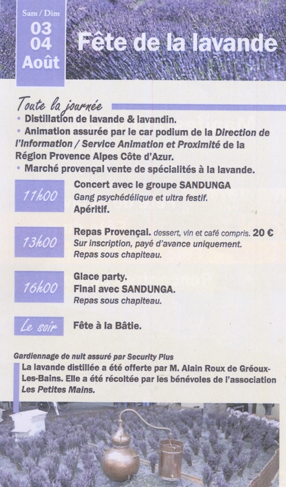 | Merci à Mr Alain Roux qui a offert la lavande récoltée par les bénévoles de l'association --> les photos --> la vidéo | ||