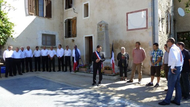 Ce lundi 14 juillet a eu lieu la cérémonie commémorative de notre fête nationale. Cette cérémonie s'est déroulée devant quatre vingt personnes. Après la minute de silence, M.OTTO-BRUC Thierry, Maire de la commune a rappelé dans son discours les faits historiques qui ont fait de ce jour notre fête nationale. Merci à la chorale canto verdoun pour son interprétation de notre hymne national: la Marseillaise. |
