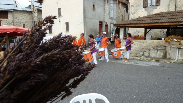 | Ce samedi 01 Août 2015 malgré une météo capricieuse, les fêtes de la lavande et du pain ont encore une fois fait le plein. Un grand merci à Marc Liboa et aux bénévoles pour l'organisation réussie de cette manifestation. Tout a commencé dés 9h ce samedi matin, les représentants des villages alentours avaient fait le déplacement et ont pu profiter comme tout le monde du petit déjeuner franco-italien offert. A 9h30 le père Alain Benoit a béni les pains puis tout au long de la journée les animations se sont enchainées ... Chants provençaux, percussions brésiliennes Batuc Calu et Rosalie Orchestra. Le repas provençal au bistrot de pays a réuni une soixantaine de personnes. Il ne fallait pas manquer aussi la distillation de la lavande, et de quelques autres plantes, grâce a un alambic en cuivre de 1920 et le distillateur venu tout spécialement de la Drôme. |