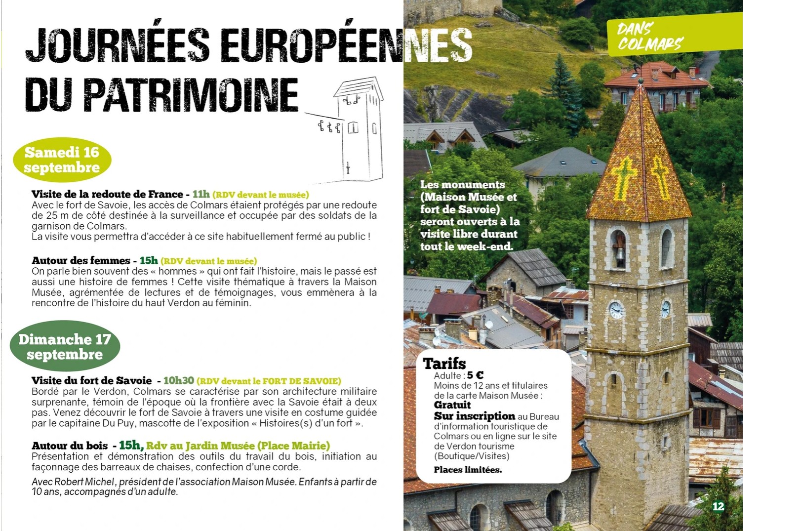 Les journées européennes du patrimoine se tiendront à Colmars le weekend du 16 & 17 septembre